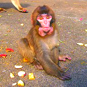 新編全集本や新釈全訳本の解説は、サルの特徴として顔と尻が赤いことを言っているようであるが、書いてあるのは「口尻」である。口の尻、すなわち、口のわきの部分が「明耀」となるようなことがないかといえば、猿頬が膨らんでいる時のことがそれに該当すると理解される。