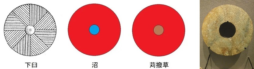 国造たちの仕掛けてきた野火とは、サカムカヘ(逆迎)のための迎え火である。対抗する倭建命は、逆に「著二向火一」けた。ムカヘヒに立ち向かうのに、ムカヒヒを以て処した。そして、草が燃え尽きたところを逃げ道として、迫って来る火の環から脱出している。なぜ、沼を持ち出しているかについて、ヌ(沼)は、ヌ(瓊)、すなわち、玉環のことを表すからでもある。「天沼矛」(記上)は、「天之瓊〈瓊は、玉なり。此には努と云ふ。〉戈」(神代紀第四段本文)と記される。景行記に、「還出」とある「還」字は、「睘は死者の胸に○(環)を加え、上に目を加えて、復活を祈ることを示す字。還とはこれによって生還することをいう。それで往還の意となる。」(白川1995.248頁)という。「たまたま」抜け出せたことは、玉環の太さ(内径と外径の差)によるという理屈かも知れない。「沼」はヌ(瓊)と一音で訓まれることが期待されていた。